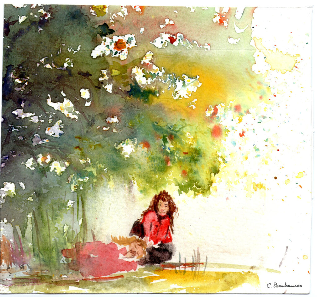 Garance est le nom d’un groupe de sept artistes aquarellistes. Depuis 2013, Danielle, Marlène, Marie-Claire, Marina, Maryse, Maryvonne et Nicole ont élu domicile au Pressoir, rue des Maronites. Chaque semaine elles s’y retrouvent. Dans l’atelier, réunies autour de plusieurs tables – feuilles de dessin, gobelets à eau, peintures et pinceaux disposés devant chacune – elles travaillent de concert. L’ambiance est décontractée, amicale. Tout en bavardant et plaisantant, les créations s’ébauchent. Cette fin d’année revêt une dimension particulière. Catherine qui fut l’une des fondatrices du groupe est partie. Ses amies évoquent la légèreté et la douceur de ses aquarelles ; de ses compositions florales notamment.