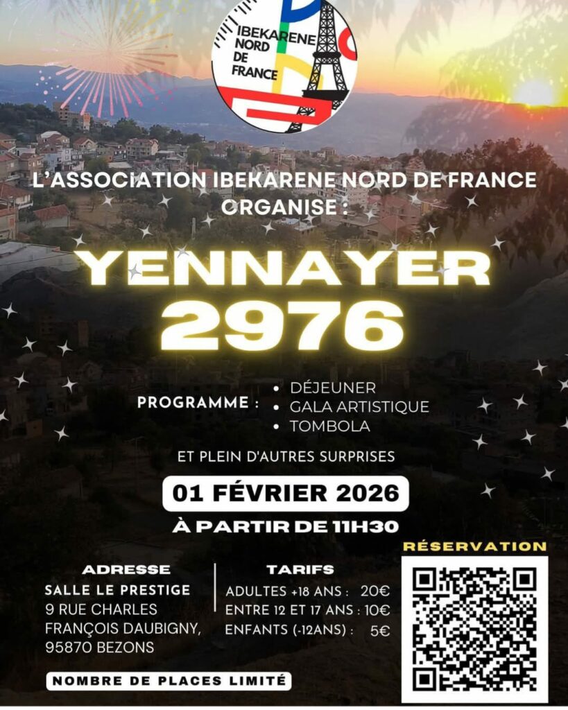 A l’occasion de yennayer 2976, le nouvel an amazigh, les associations se mobilisent et montrent le dynamisme des Berbères de France. Voici une liste (non exhaustive) de quelques rendez-vous de l’année 2026 :