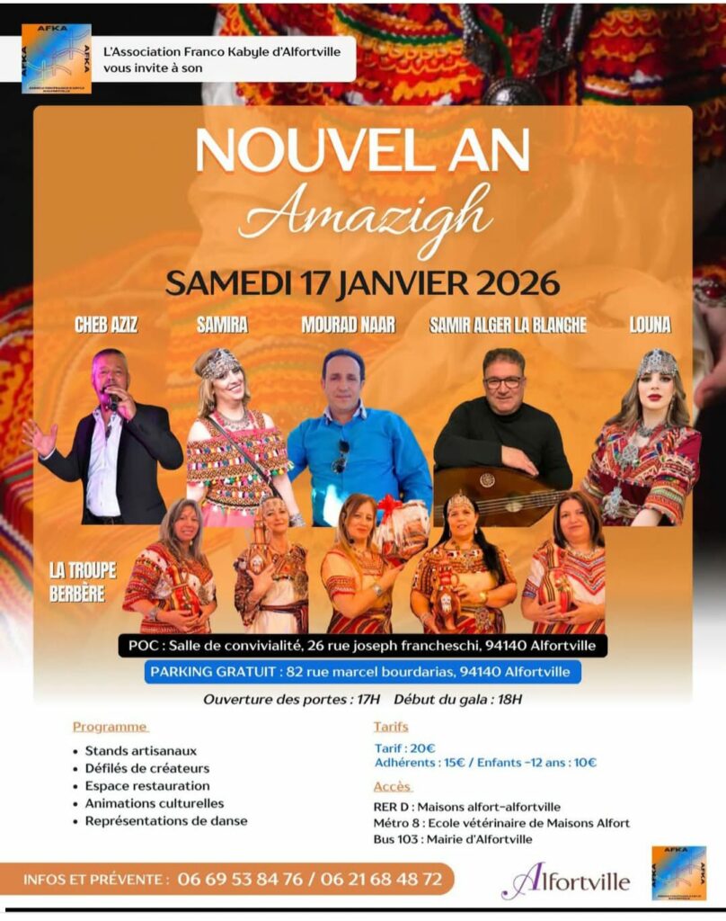 L’Association Franco-Kabyle d’Alfortville célèbre le Nouvel An amazigh avec un gala culturel et festif le 17 janvier. ➡